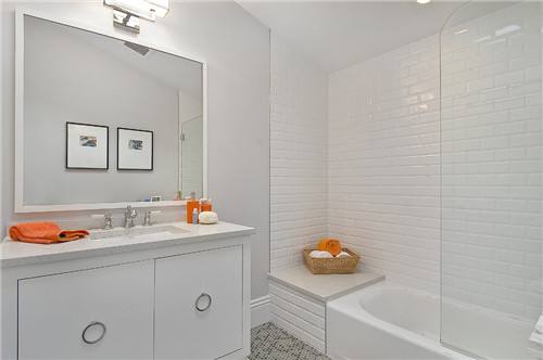 用單色瓷磚來鋪設(shè)衛(wèi)生間,會(huì)顯得比較單調(diào),所以設(shè)計(jì)師一般都會(huì)選擇加上適當(dāng)?shù)幕ùu作為點(diǎn)綴??梢栽隈R桶后面的墻壁或者衛(wèi)生間的墻壁上多做裝飾,這樣整體效果也會(huì)看起來更加時(shí)尚、美觀。