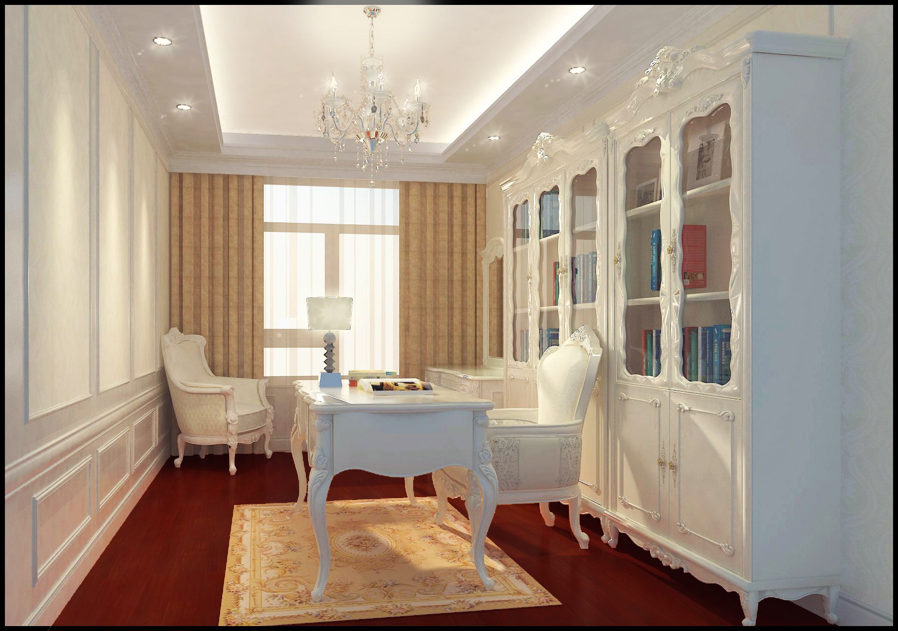 除了隔音,書(shū)房采光也尤其重要,如果書(shū)房是為青少年準(zhǔn)備的,那更要注重光源的合理性。首先,書(shū)桌的位置應(yīng)該擺放在光線(xiàn)充足,但是又不會(huì)被陽(yáng)光直射的位置。書(shū)房燈光應(yīng)該柔和,分布合理,盡量避免局部強(qiáng)光刺眼的情況。