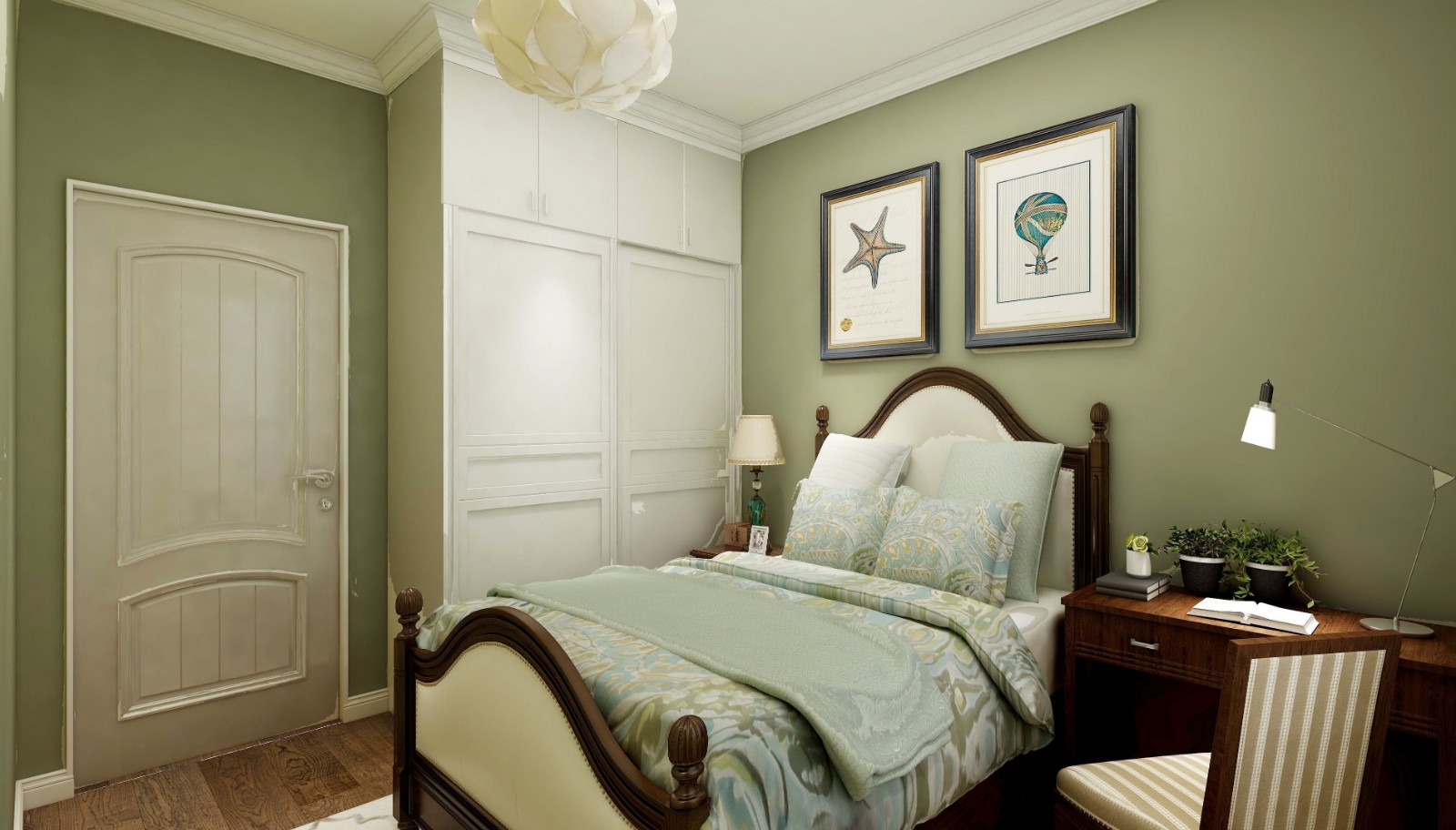 這套美式風(fēng)格的案例沒有濃墨重彩的裝飾,起到好處的綠色營造了清新的氛圍。家具的選擇很符合美式的風(fēng)格,有一種住在美劇里的感覺。