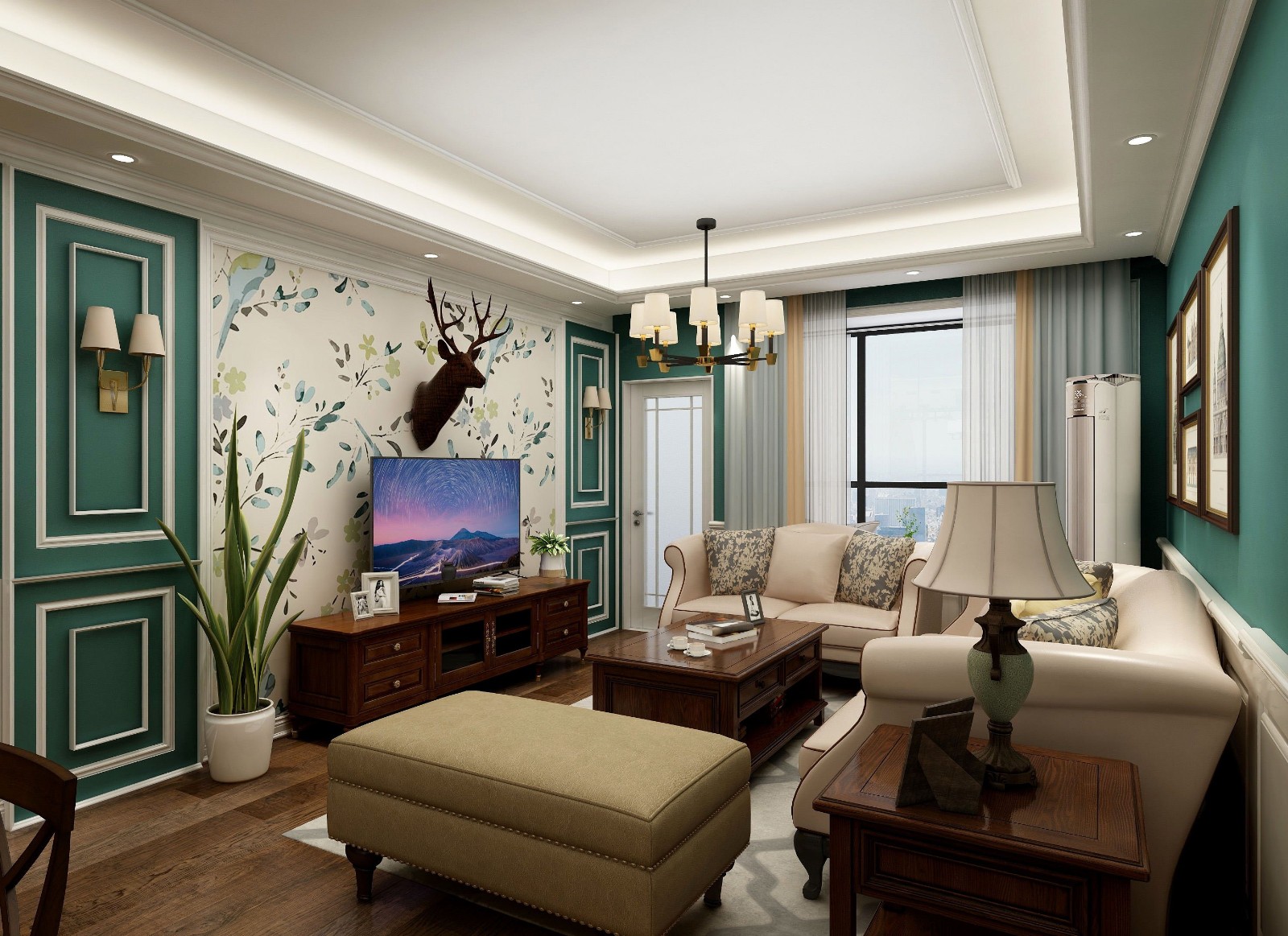南寧中國鐵建·云景山語城120平米美式風(fēng)格案例效果圖