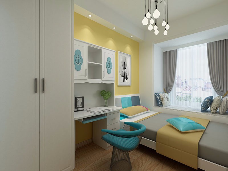 現(xiàn)代的時(shí)尚里帶了點(diǎn)日式的簡約,次臥的面積雖然不大,但是卻劃分出了學(xué)習(xí)、休息、休閑的空間。