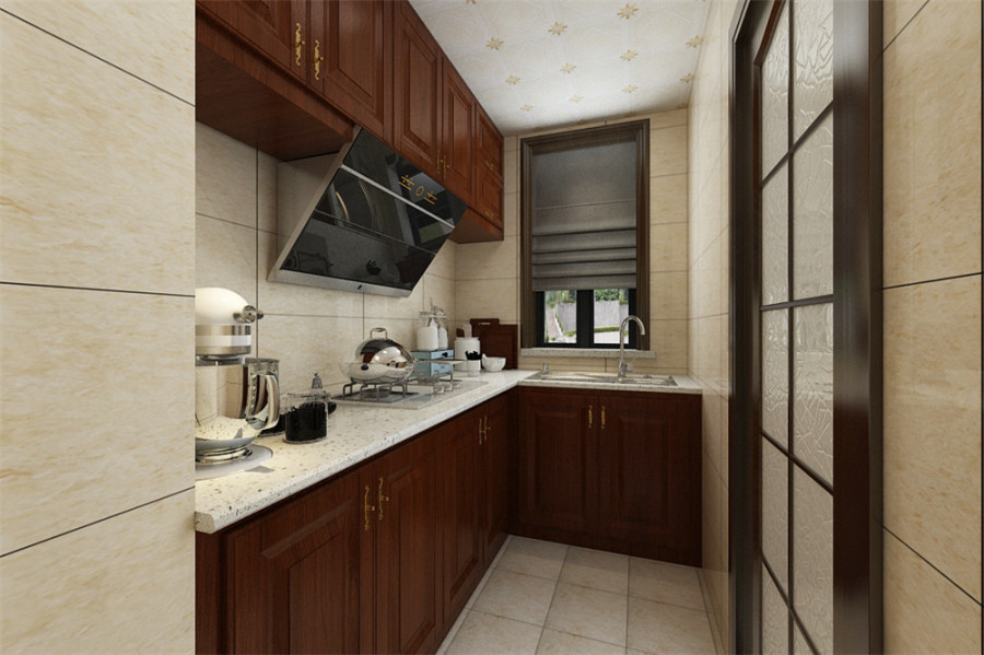 廚房的面積雖然不大,但勝在采光好,所以即使做成了封閉式的也無傷大雅。中式的櫥柜讓廚房也顯得質(zhì)感十足。