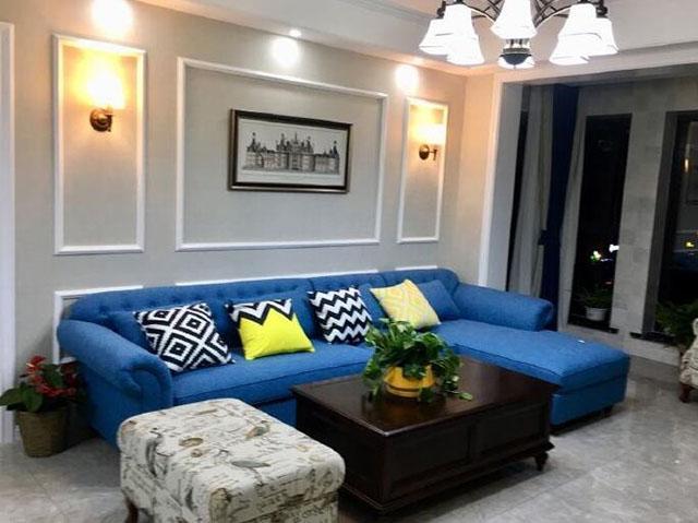 這套美式風(fēng)格簡單大方又溫馨舒適,白色為主,適當(dāng)?shù)木G色做點綴,客廳里的藍色沙發(fā)穩(wěn)重又有質(zhì)感。臥室里的墨綠色背景墻很能吸引人的眼球,清新舒適又自然放松,定制的白色衣柜也很符合整體的風(fēng)格,雖然臥室的面積都不是很大,但是儲物功能還是比較強的。