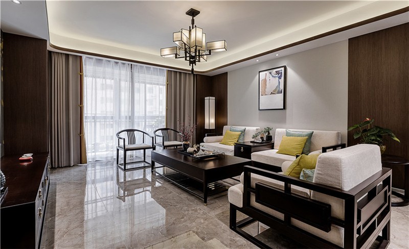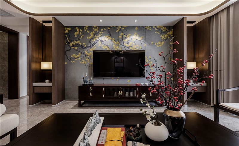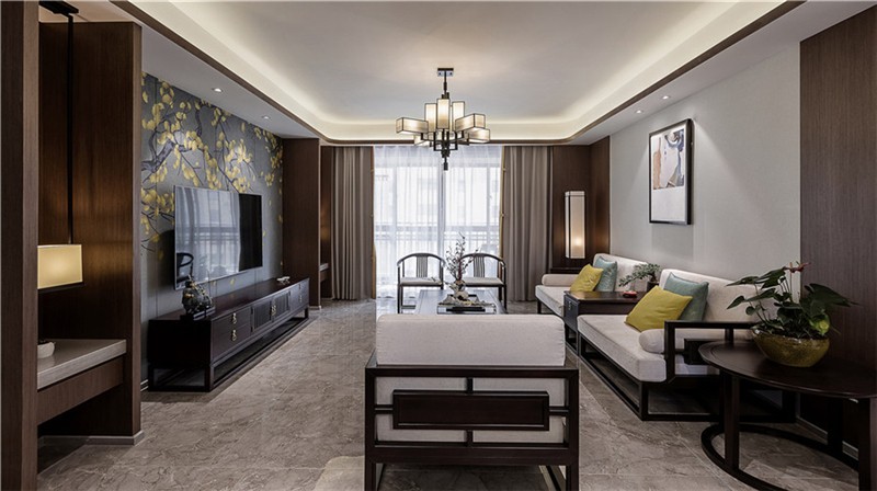 南寧廣匯名都126平米中式風(fēng)格裝修案例效果圖